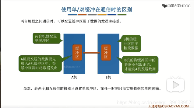 单缓冲时,只能单双工通信,不能全双工,这是由缓冲区的特性决定的