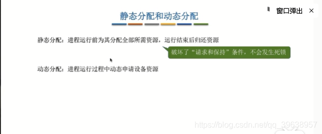 静态分配:进程运行前分配所有需要的资源。此过程中不需要再请求