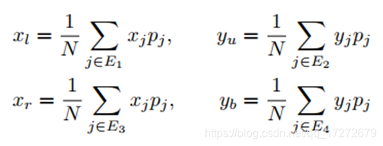 通过上述过程即将N×N个点映射回了输入图像,那么由这些点怎样生成目标物体的坐标框呢,论文中的公式化描述为: