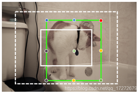 通过上述流程还不足以实现精确的对目标定位,因为有一些proposal覆盖区域比较小,其和groundtruth重合度较小,这使得在网给点的生成中难以对其进行有效的监督训练,如下图中初始生成的proposal即白色框和groundtruth标注框只有两个点重合。