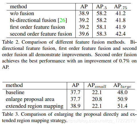 下图显示通过Grid Points Feature Fusion以及Extended Region Mapping所带来的实验结果的改变,可见两种改进方法的加入都带来了相应的提升。