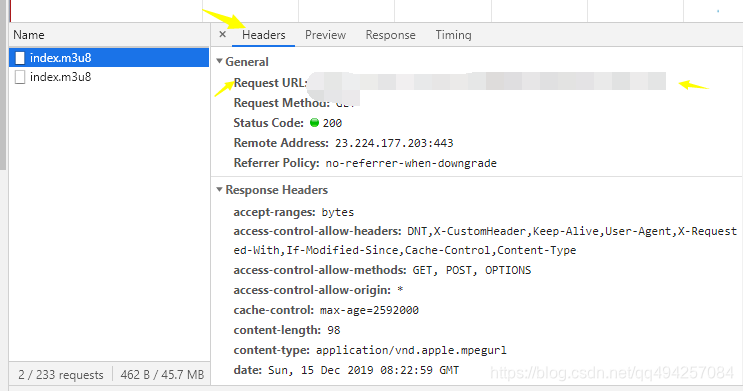 一般情况下,我们需要的是第一个链接。也就是Request URL:后面的链接。这个就是文章后面要用的m3u8链接。