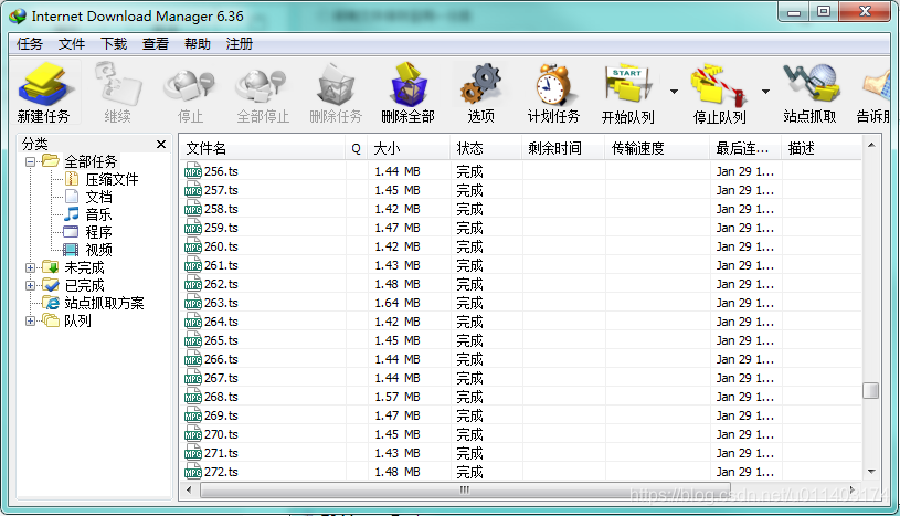 下载完成后,打开ts合并工具选择所有需要合并的ts文件(就是刚才设置的保存文件地址),点击合并: