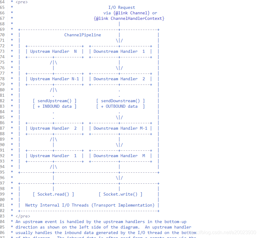 这里会调用writeFromSelectorLoop方法,进行写并向ChannelPipeline增加事件进行后续的相应的处理。下图(源码中的说明)对管道的处理流程表达的相当清楚: