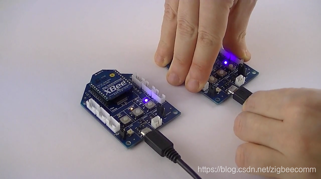 - 将XBee模块插入XBee Grove开发板,然后使用提供的Micro USB电缆将它们连接到计算机。有关更多信息,请参见插入XBee模块。