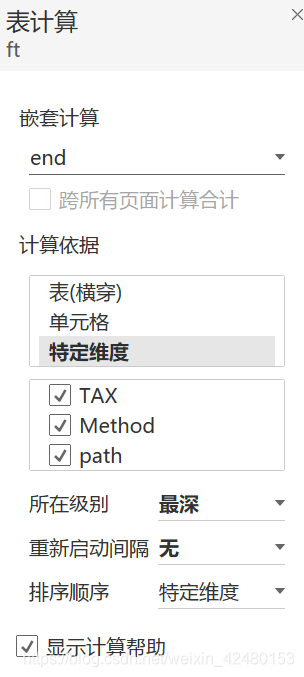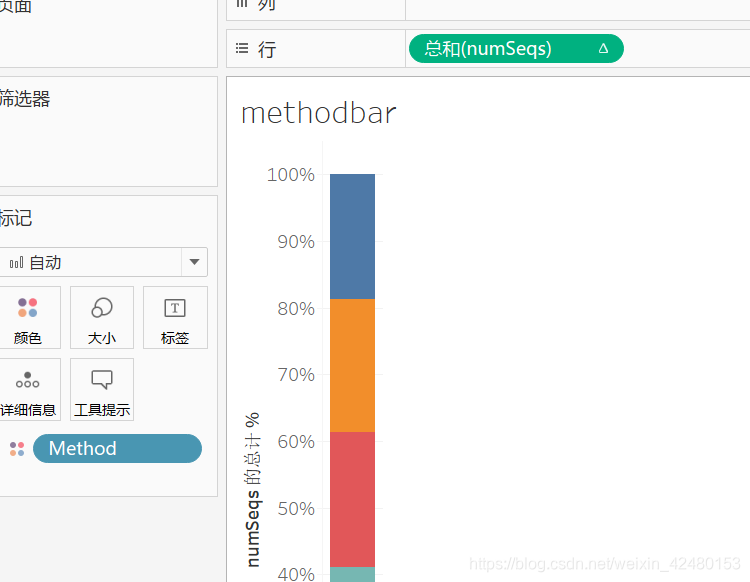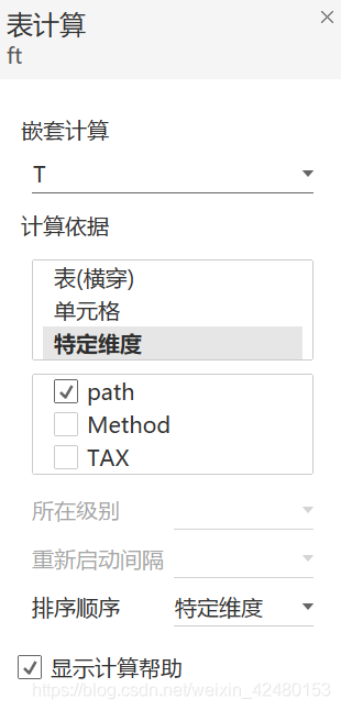 我们说了x不需要过大、[-5,-5]够了,便于修理设定到[-6,-6]:创建字段t,公式(index()-25)/4,计算的依据是path(意思就是index([path]))。创建字段logstic,公式1/(1+EXP(1)^-[t])。设定曲线左端高度:创建int字段,公式100*RUNNING_SUM(sum([numSeqs]))/TOTAL(sum([numSeqs]));创建end字段100*RUNNING_SUM(sum([numSeqs]))/TOTAL(sum([numSeqs]))。这两有啥不一样呢?计算依据不同。int计算依据是method,tax,path;end是tax,method,path。两个都在是分类依据,类别数跟顺序无关,类别和顺序有关、谁在前分类就按谁来。这和excel的排序处理很类似,都是且的关系,谁在前、主要分类依据就是谁。一会图建好了右键再看下数据就更清楚了。细心的朋友发现了终点其实不是终点,终点应该减去起点那个截距,所以最终曲线函数:创建字段ft,公式[INT]+([end]-[INT])*[logistic]。大小写不要纠结,你保持一致就好,我懒得改。现在把ft拉倒行去,右键编辑计算表,设置如下: