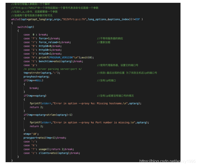 其实这就是传说中的argc argv[],不过程序在此处用到了C语言的getopt_long函数。想要了解如何解析Linux命令行参数,去查getopt_long这个函数