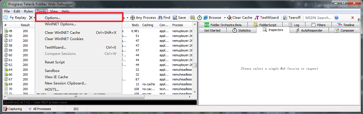 打开fiddler,点击导航栏->Tools->Otions->HTTPS
