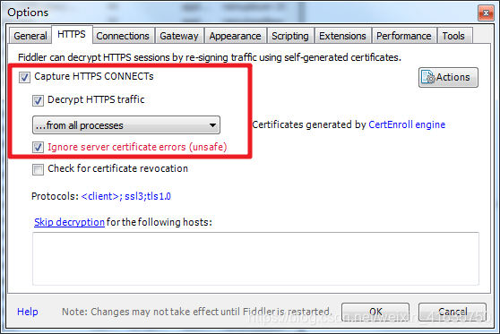 1、fiddler抓取https协议需要安装证书。