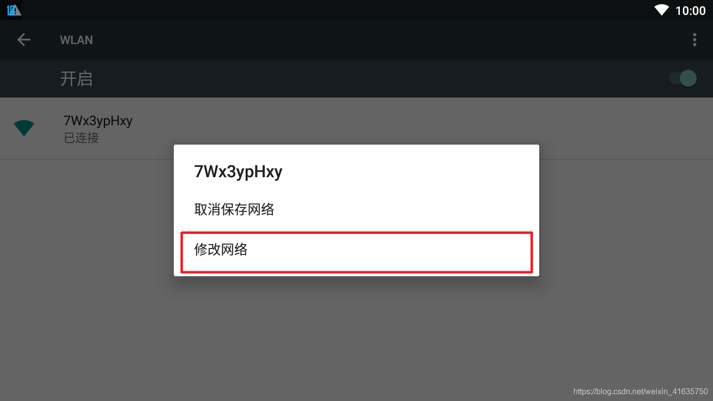 对连接的wifi,长按左键后,选择修改网络