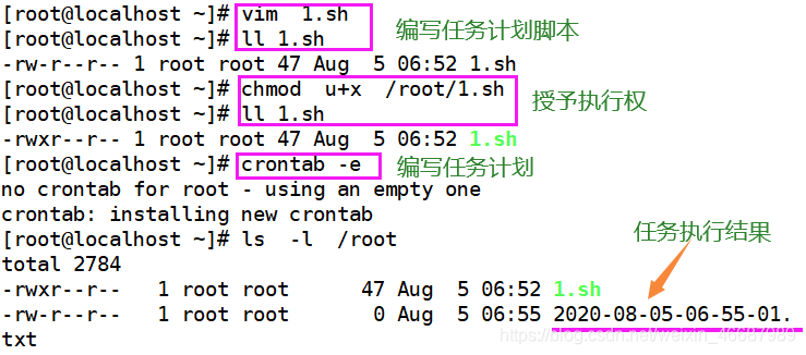 计划任务存储位置 [root@localhost ~]# ls /var/spool/cron/