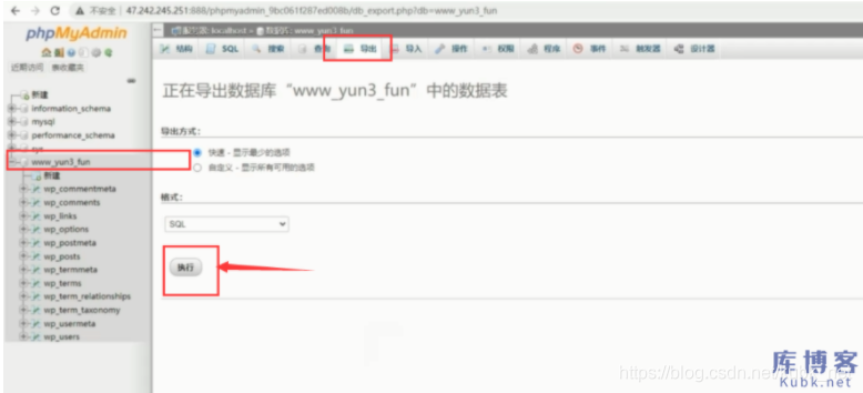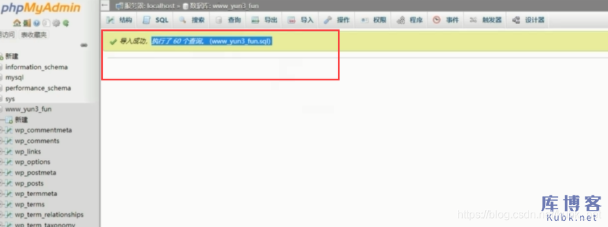 接着,在新的云服务器里打开phpmyadmin面板,把对应的数据库导入进来。