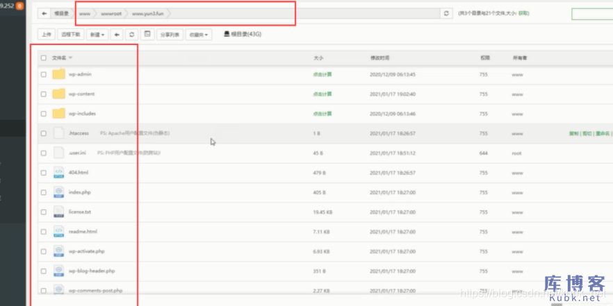 以宝塔面板界面截图来说明,没有安装宝塔面板的朋友可以用文件数据传输工具,比如winscp。