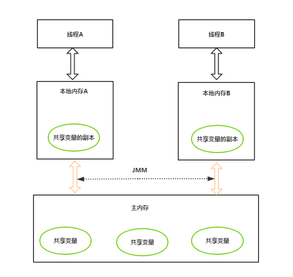 - Java内存模型规定了所有得变量都存储在主内存中,每条线程还有自己的工作内存,线程的工作内存中保存了该线程中进行,而不能直接读写主内存。不同的线程之间也无法直接访问对方工作内存中的变量,线程间变量的传递均需要自己的工作内存和主内存之间进行数据同步进行。