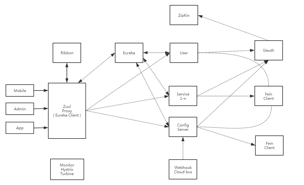 - 最后我们使用Sleuth+Zipkin将所有得请求数据记录下来,方便我们进行后续分析