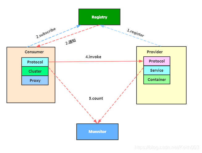 - Monitor:统计服务的调用次数和调用时间的监控中心