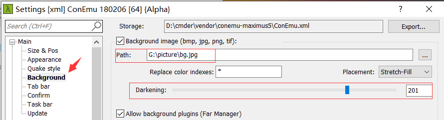 设置背景图片和图片亮度。
