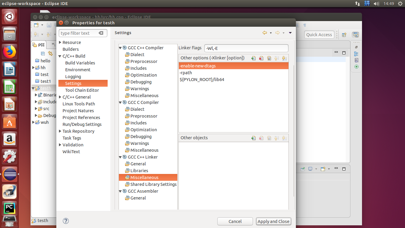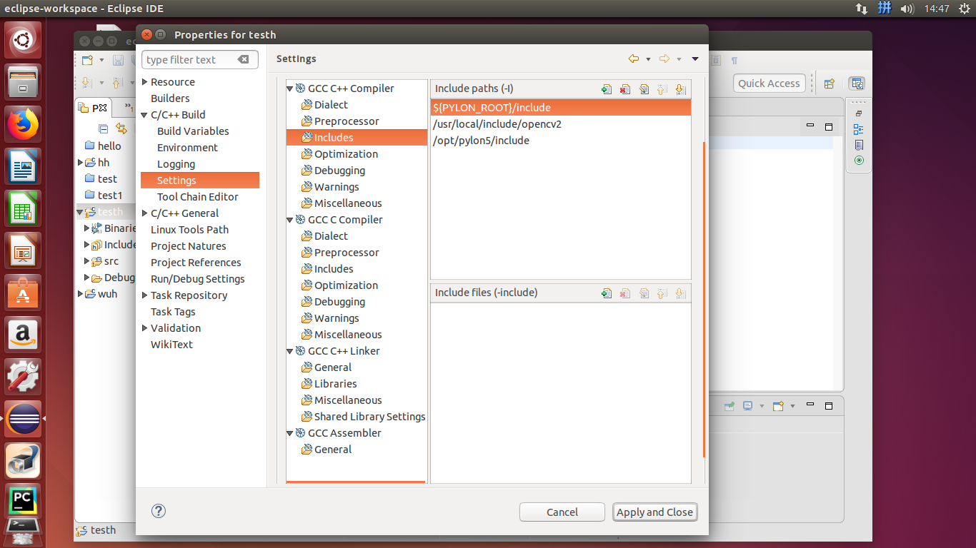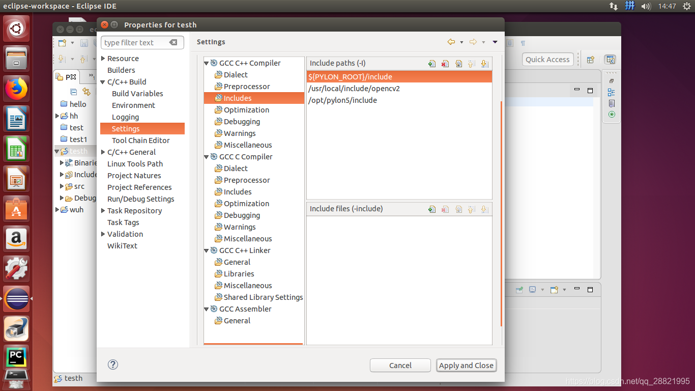 下面正式进入开发:打开eclipse创建一个新的c++环境,下面用图来说明配置include文件和依赖库
