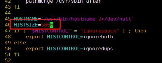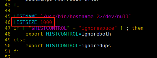 1、编辑系统的环境变量文件 [root@node2 tmp]# vim /etc/profile 46行的HISSIZE=1000 是history默认的条数 2、修改默认条数为5000 保存退出 3、使修改配置生效,声明环境变量 [root@node2 tmp]# source /etc/profile 文章来源: https://blog.csdn.net/weixin_43822878/article/details/91954378 标签 linux环境变量 linux系统 tmp文件 环境变量 history