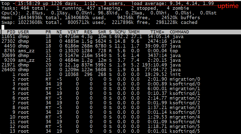 top 运行中可以通过 top 的内部命令对进程的显示方式进行控制。内部命令如下: