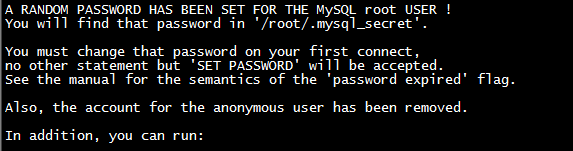 mysql安装好后会生成一个临时随机密码,存储位置在/root/.mysql_secret