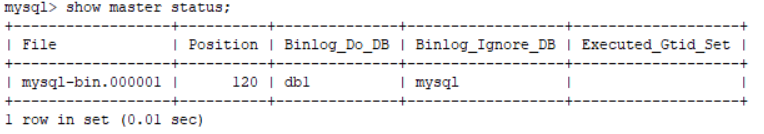 | binlog-do-db=db1 binlog-ignore-db=mysql #启用二进制日志 log-bin=mysql-bin #服务器唯一ID,一般取IP最后一段 server-id=130 |