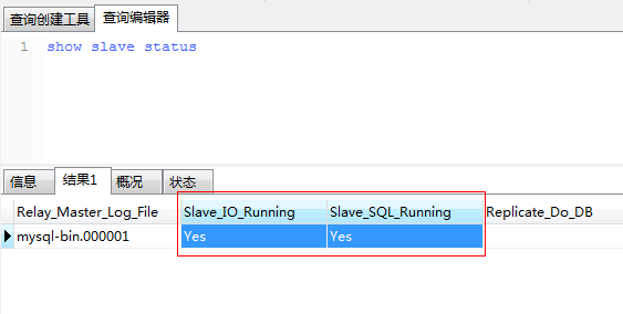 注:Slave_IO及Slave_SQL进程必须正常运行,即YES状态,否则都是错误的状态(如:其中一个NO均属错误)。