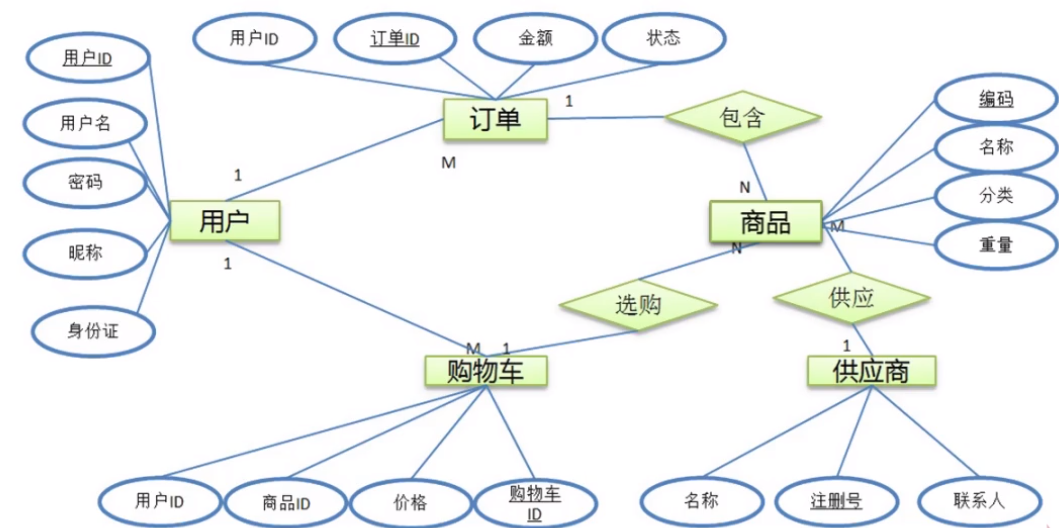 实体及实体之间的关系(1对1,1对多,多对多)