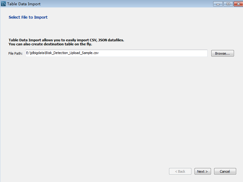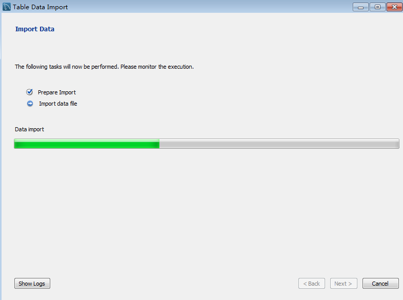 2、在上图中的Tables上右键,点击Table Data Import Wizard选项,进入如下所示对话框。