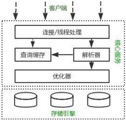 连接管理模块、进/线程连接模块、线程连接池:连接管理模块负责监听MySQL Server的各种请求,根据不同的请求,然后转发到线程管理模块,每个客户请求都会被数据库自动分配一个独立的线程为其单独服务,而连接线程的主要工作就是负责MySQL Server与客户端通信,线程管理模块负责管理这些生成的线程。