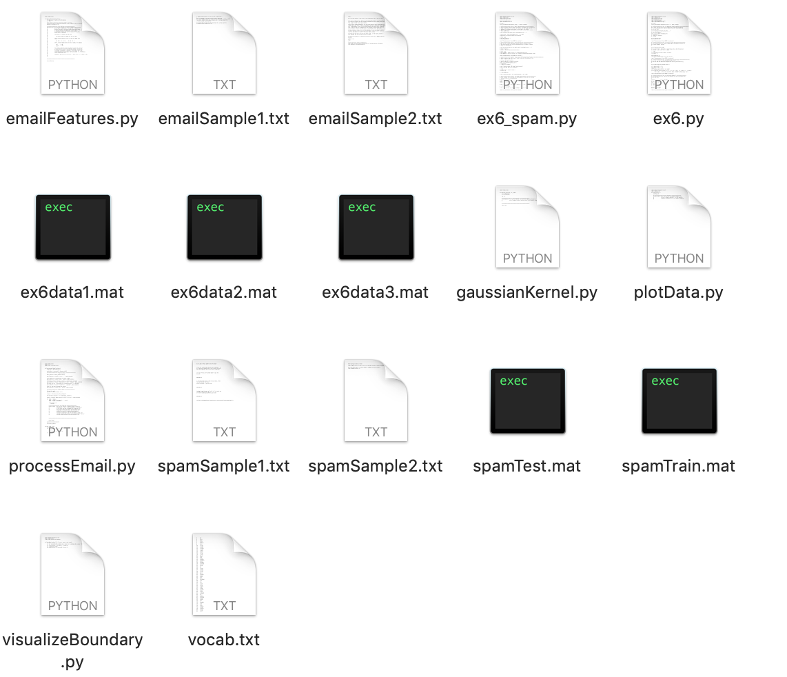 | ex6_spam.py | 实验2垃圾邮件分类主程序 |