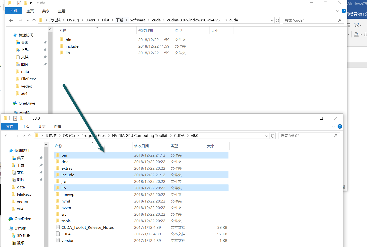 cuda 安装解压缩后 文件目录