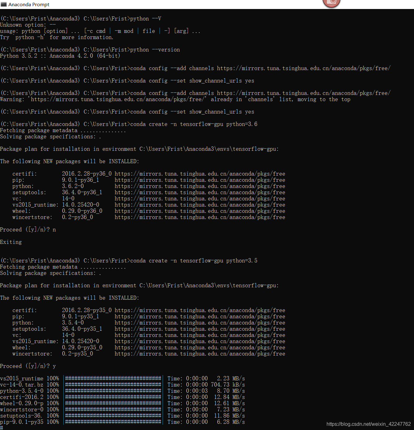 conda create -n tensorflow-gpu python=3.5