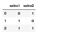 df1.sales1.map(lambda x : 1 if x>0 else 0) #df1.sales1就是一个Series 0 0