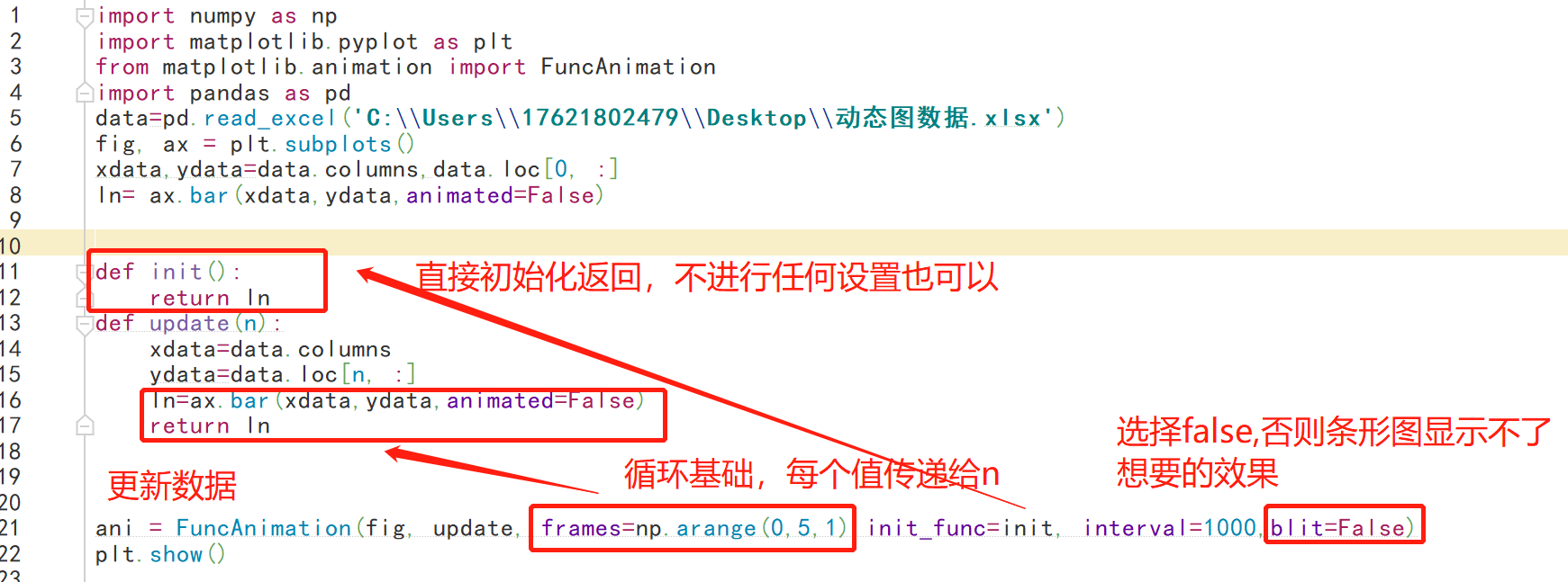 上一篇文章利用plt.ion()的设置进行了动态图的绘制,今天学习了下利用animation绘制动态图,确实更强大,但是也较难理解。