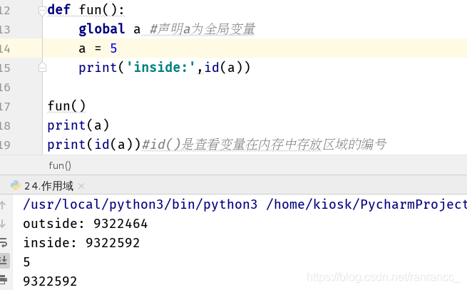 - 此时函数内部定义的a是全局变量,所有的输出均为全局变量的信息