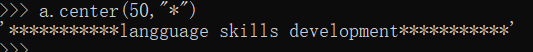 center() # 字符串居中,第二个默认是以空格填充,可以由用户自己执行填充的字符串