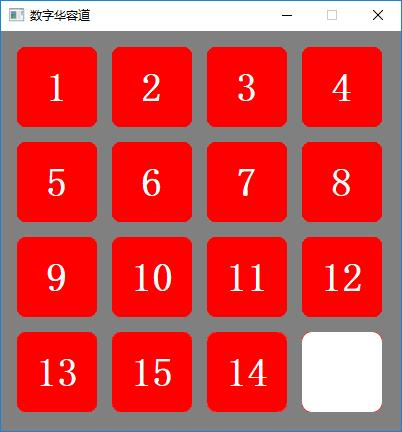 如图所示,14 和 15 方块位置反了,无论如何也还原不聊了,这种情况是随机出现的。到底是怎么回事呢?经过一番上网搜索,确实如果只有两个数字的位置反了,无论如何也还原不了的。那这是由什么造成的呢?还记得我们的二维数组是怎么产生的吧,随机的,也就是说可能会随机到无法还原的情况。