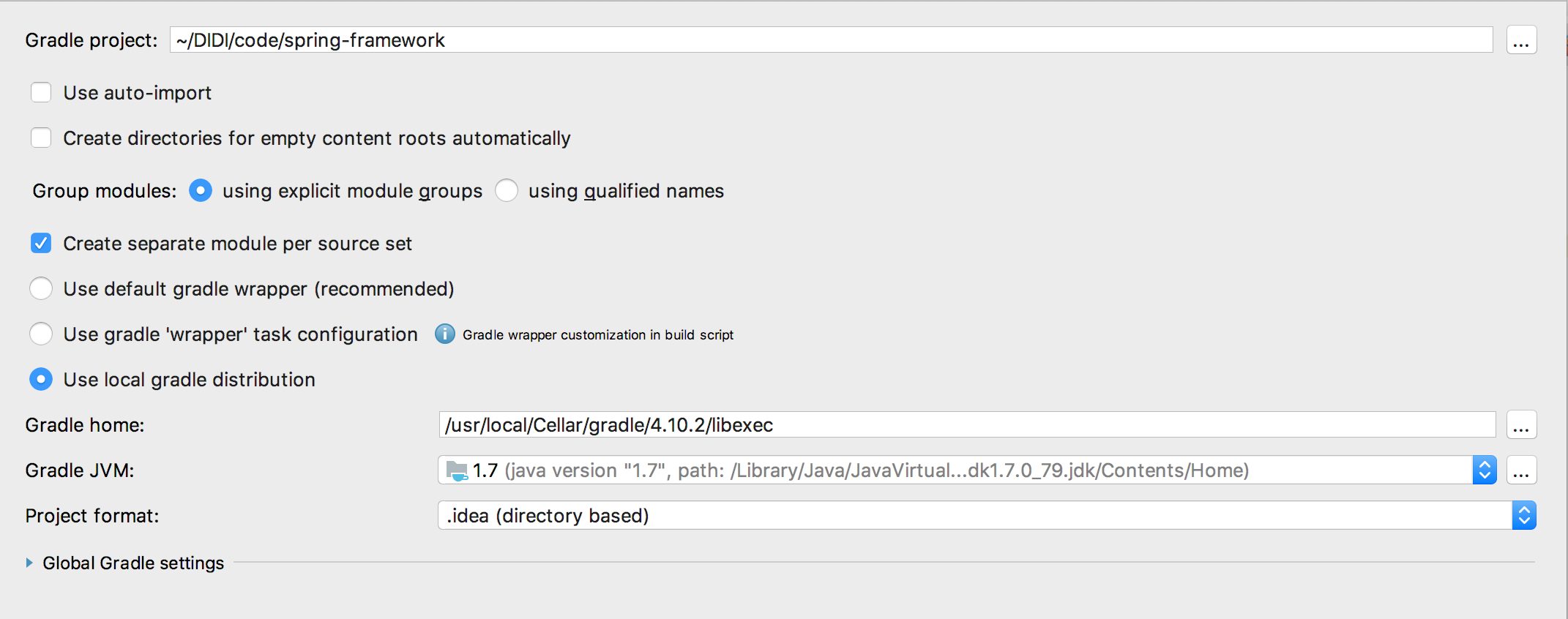 错误如下: Error:(26, 38) java: 找不到符号 符号: 类 InstrumentationSavingAgent 位置: 程序包 org.springframework.instrument 解决方法:导入项目时选择 Use local gradle distribution,设置好Gradle home:(mac 通过brew info gradle查询目录 ) 至此解决了; 文章来源: IDEA 导入Spring源码:找不到InstrumentationSavingAgent 标签 时政