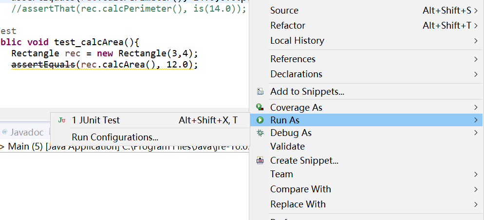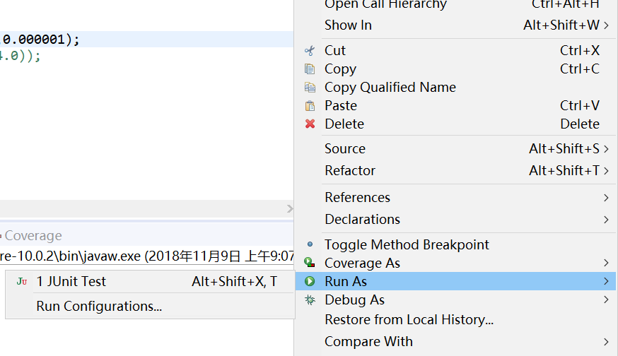 7、如果想要一次全部测试的话,直接和运行一样,右击――Run As即可