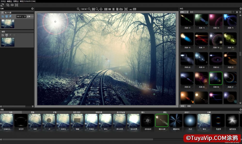 用与模拟光学相机滤镜,专业镜头,电影胶片和颗粒,镜头光晕,光学实验过程,色彩校正,键控抠像,合成以及自然光和摄影等众多效果。