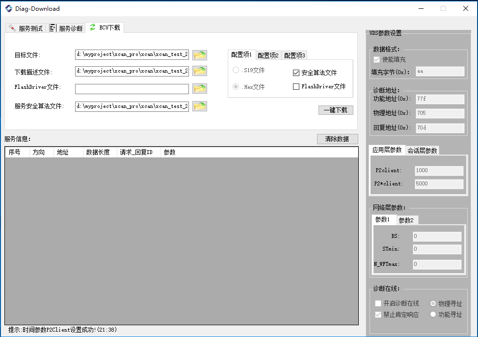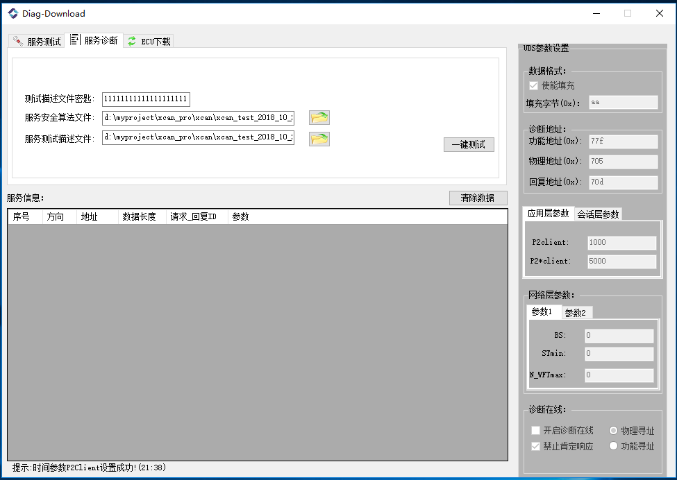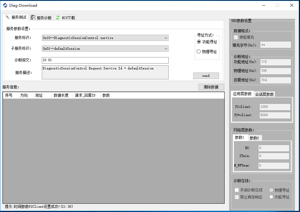 诊断下载-服务测试窗口: