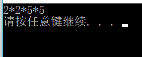 void Prim(int m) { int i =0; for(i =2;i<(m/2+1);i++) { if(m%i==0) { break; } } if(i==(m/2+1)) { cout<<m<<endl; } else { cout<<i<<'*'; Prim(m/i); } } int main() { Prim(100); return 0; }