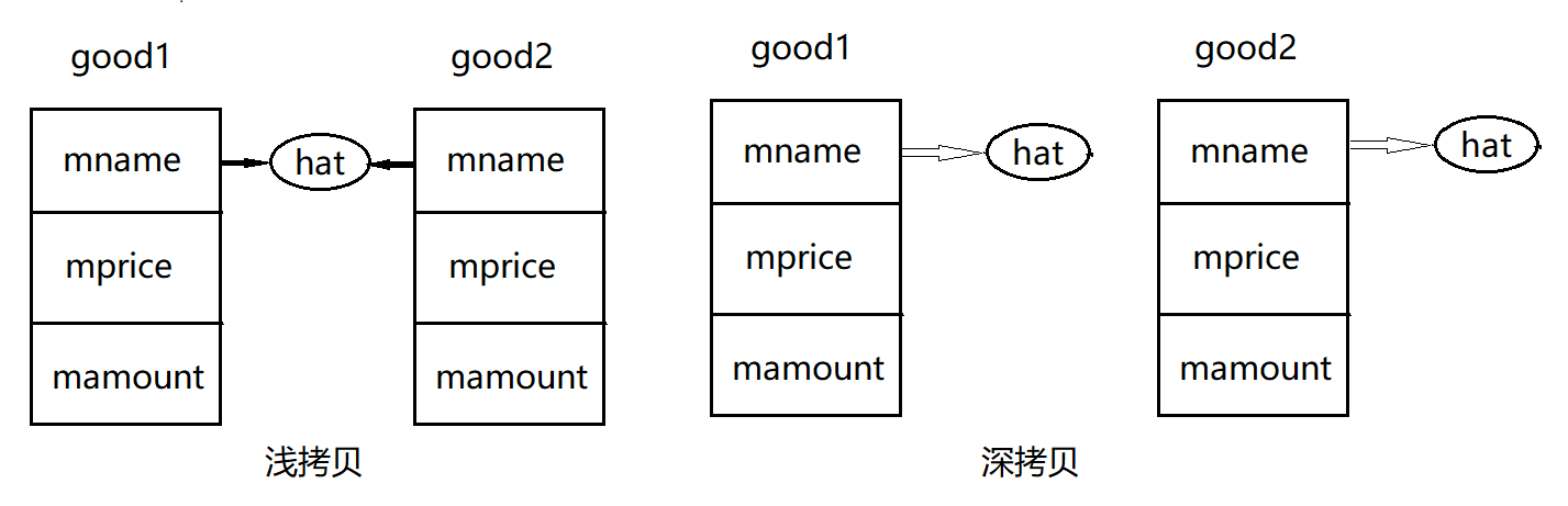CGoods(const CGoods& rhs) { mname = new char[strlen(rhs.mname) + 1](); strcpy(mname, rhs.mname); mprice = rhs.mprice; mamount = rhs.mamount; } 注意:拷贝构造函数传参必须传引用。若正常传,则会不断地递归去生成新形参对象,最后导致栈溢出。也不能用*,若写成 CGoods(const CGoods* rhs),就会变成一个构造函数,CGoods*传的是已存在对象的地址。