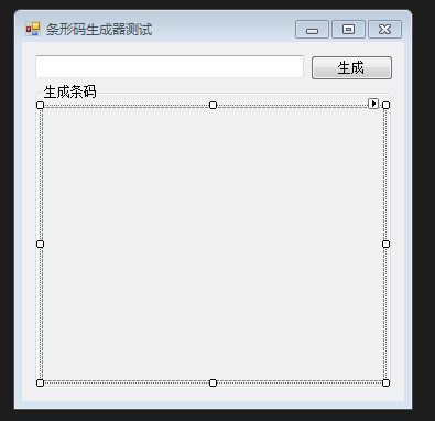 我们拖一个文本框,输入条码的信息,拖一个按钮,表示开始生成,拖一个pictureBox,存放生成出的条形码