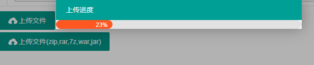 layui.use(['upload','element','layer'], function(){ var upload = layui.upload; var element = layui.element; var layer = layui.layer; element.init(); //执行实例 var uploadInst = upload.render({ elem: '#test1' //绑定元素 ,url: '/user/ceshi' //上传接口 ,accept: 'file' ,data: {path:$("#path").val()} ,progress: function(e , percent) { console.log("进度:" + percent + '%'); element.progress('progressBar',percent + '%'); } ,before:function(){ layer.open({ type: 1, title: '上传进度', area:'500px', skin: 'layui-layer-molv', closeBtn: 0, content: $('#win') //这里content是一个普通的String }); } ,done: function(res){ if(res.code == 0){ alert("上传成功"); window.location.reload(); }else{ alert("上传失败"); } } ,error: function(){ //请求异常回调 alert("上传过程请勿其他操作!请重新上传"); } }); }; 上传效果图: