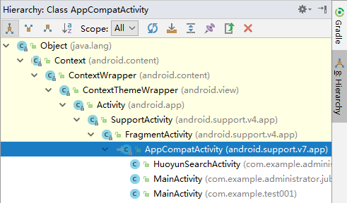 将鼠标放在要查看的类上,点击(Ctrl+H)即可查看该类的继承关系