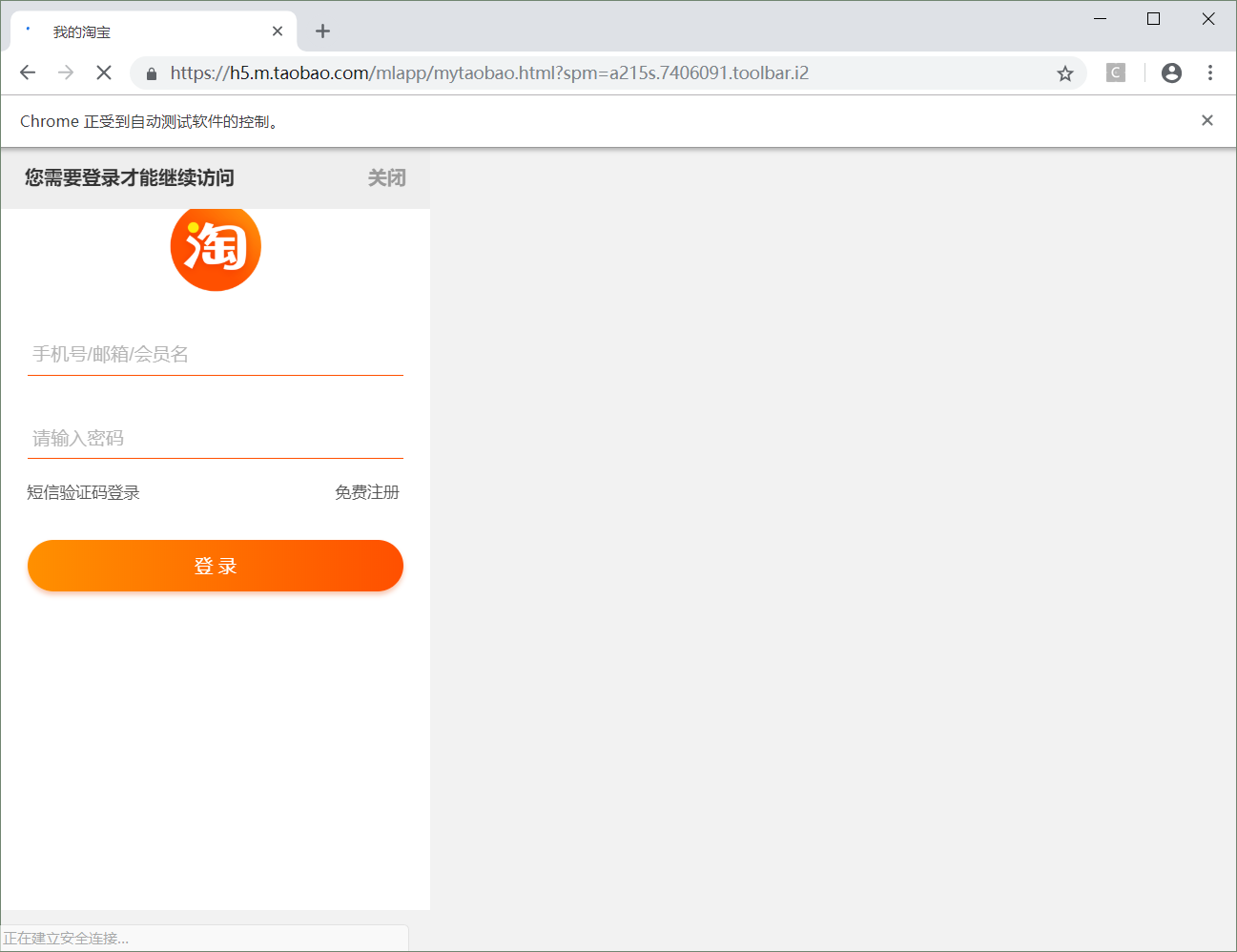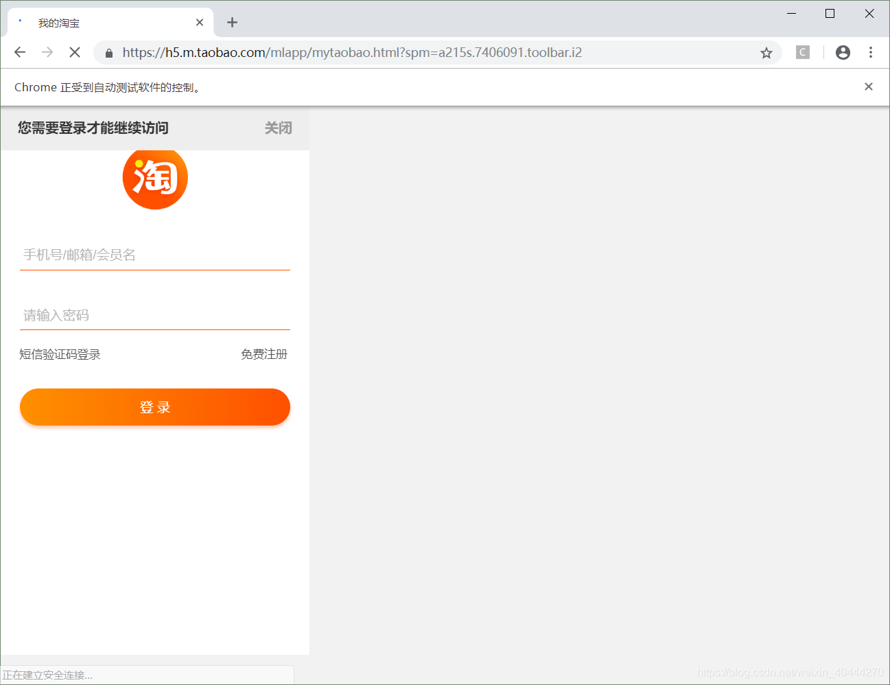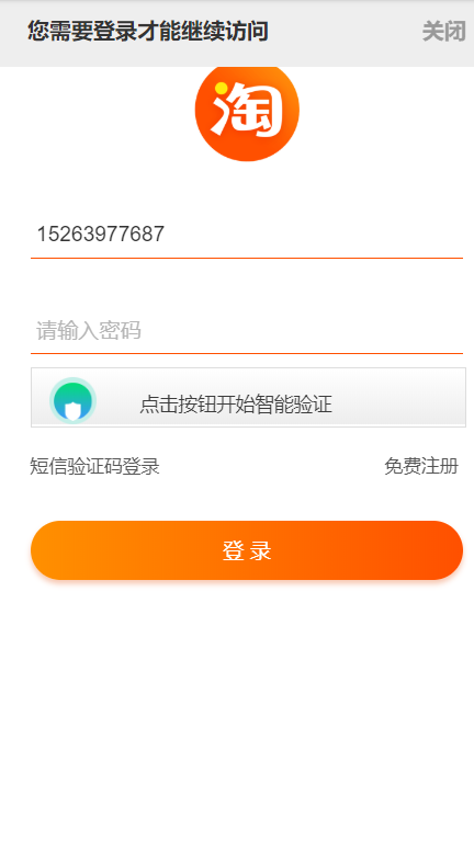 发现这个登录界面是想当简单,于是准备尝试一下,怎么解决。是不是在移动端淘宝的登录会更简单,页面如下