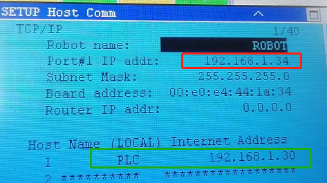 红色方框是Robot端IP,绿色方框是外部设备(这里使用的是PLC)的IP。