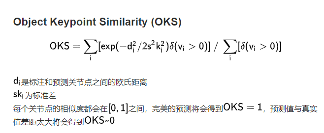OKS是关键点距离的一种度量方式,计算方式如下: